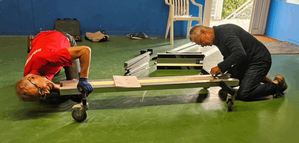 Merci Ă tous ceux qui sont venu prĂȘter main forte pour le transport et le montage – Jean-Luc, Francis, Jean-Christophe, Pascal, Albin, Patrick…